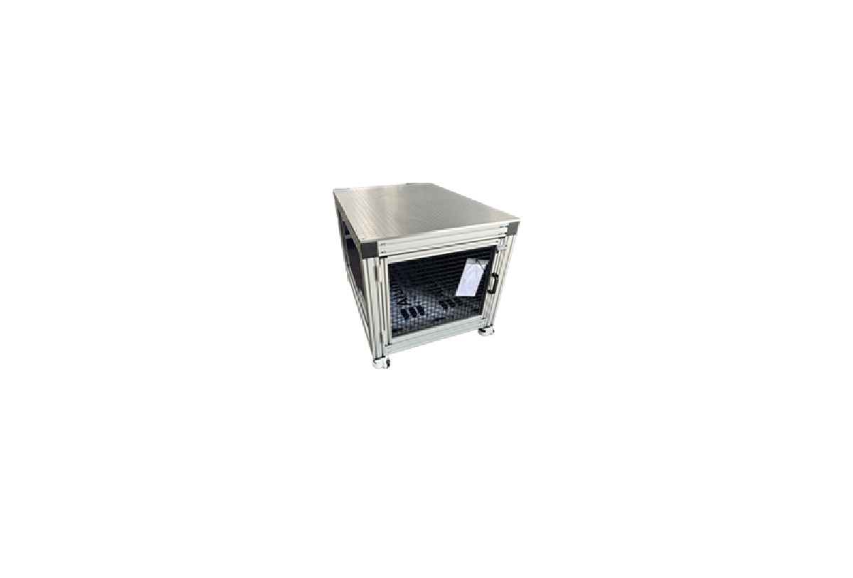 This is a extrusion cart that utilizes a breadboard style jig plate for multiple positioning of either jigs, positioning equipment, or robots. This cart was designed with custom decals onto the frame for added style.